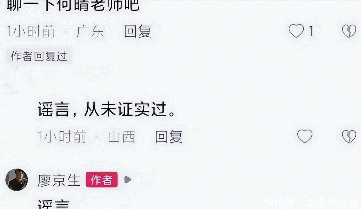 要是说许亚军那事儿还算有点由头,那另一位被牵连进来的男演员廖京生,可真是冤得赛过窦娥了。十年前何晴生病那会儿,网上就流传起一个说法,称某男子是何晴秘密结婚的丈夫。何晴得了癌症,他一直守在身边,细心照顾,陪她熬过了那段最苦的日子。